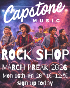 Looking for an exciting way to spend March Break? Capstone Music’s March Break Rock Shop is the ultimate experience for young musicians! From Monday, March 16 to Friday, March 20, aspiring rockers will come together to play, collaborate, and perform in a real band setting. Under the guidance of expert instructors, students will learn Top 40 songs, stage presence, and teamwork, all while jamming out to their favourite tunes.